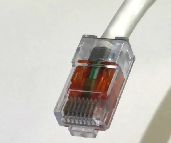 An Ethernet cable has an RJ45 connector on each end. These connectors have eight contacts that touch eight contacts inside the Ethernet port. If they’re dirty, corroded, or damaged, you won’t have a good connection, which causes slower speeds.