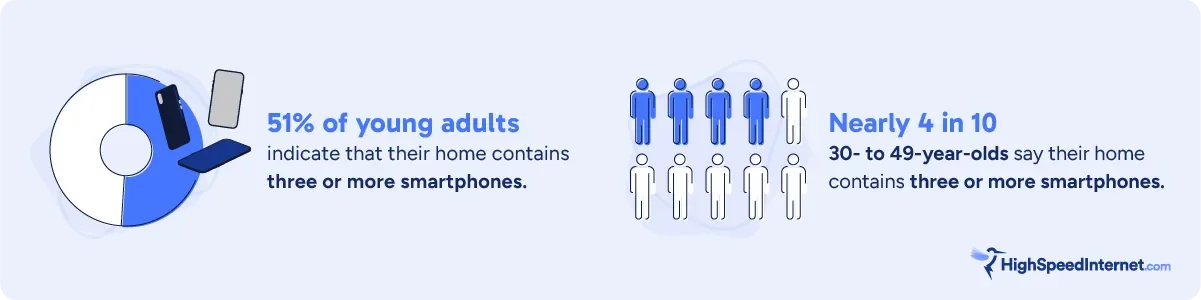 Nowadays, most households will need more than two smartphones. About 51% of young adults and nearly 40% of adults between 30 and 49 report living in a home with three or more smartphones. Four mobile lines may sound like a lot, but there are plenty of households that already fit this need.