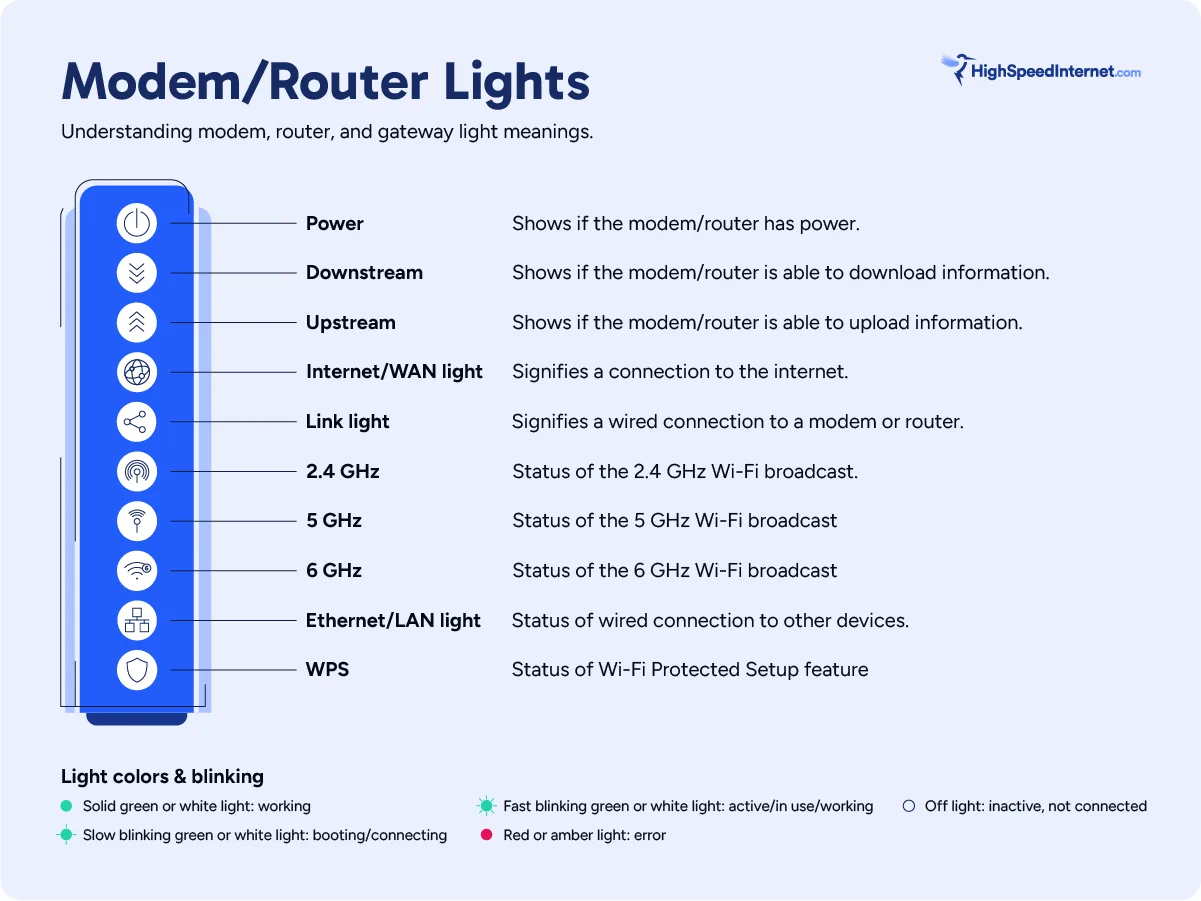 Understanding blinking lights | Understanding light colors | Understanding light meanings | Easy fixes for modems, ONTs routers, and gateways | FAQ