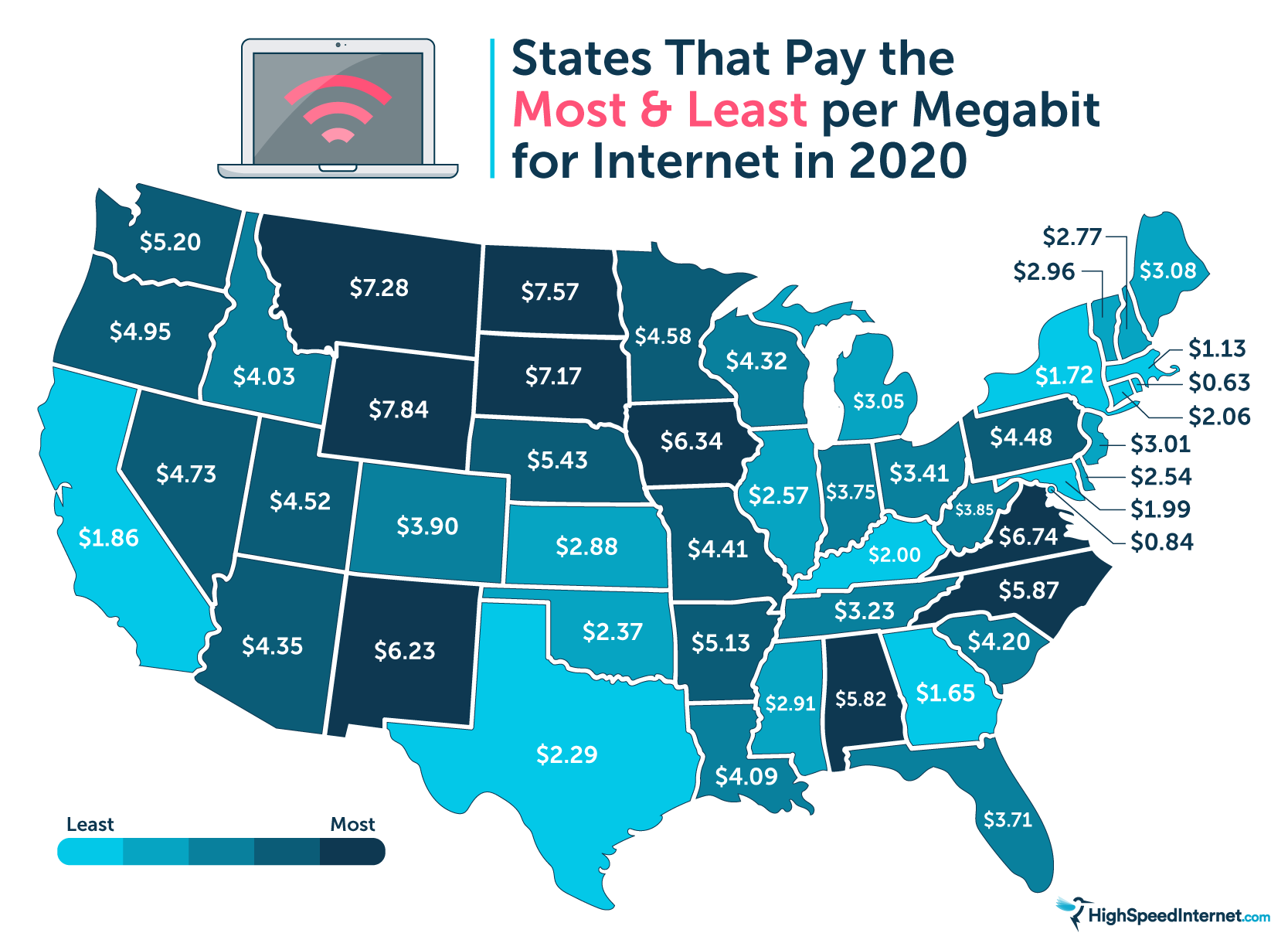 We compared what people pay for internet service with actual download speeds to find the top 10 cheapest and most expensive states to buy internet.